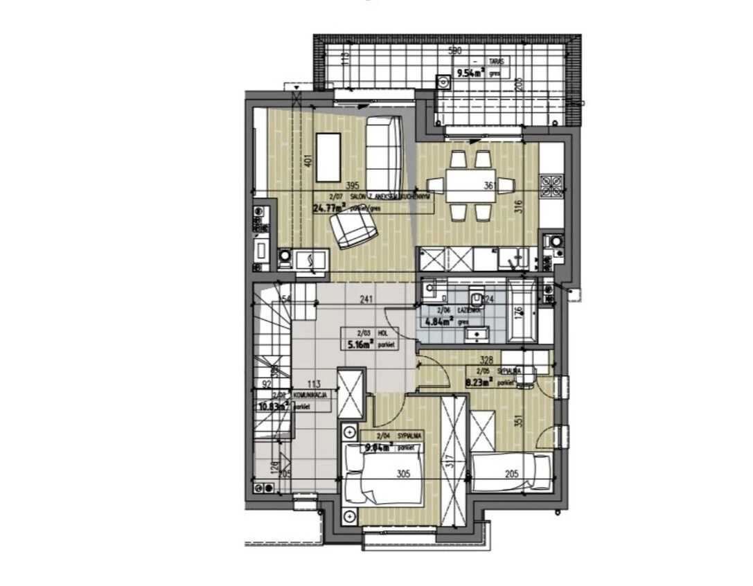• Pokój z aneksem: 24,77m2