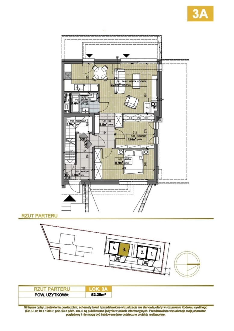 W przedmiotowym lokalu na powierzchni 52,28m2 znajdują się: