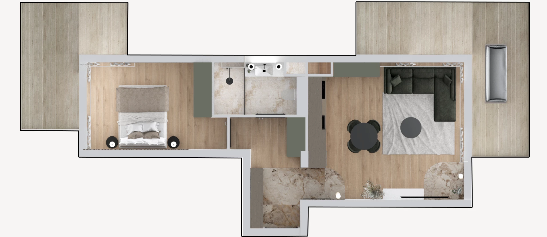 W przedmiotowym lokalu o powierzchni 45,83m2 znajdują się: