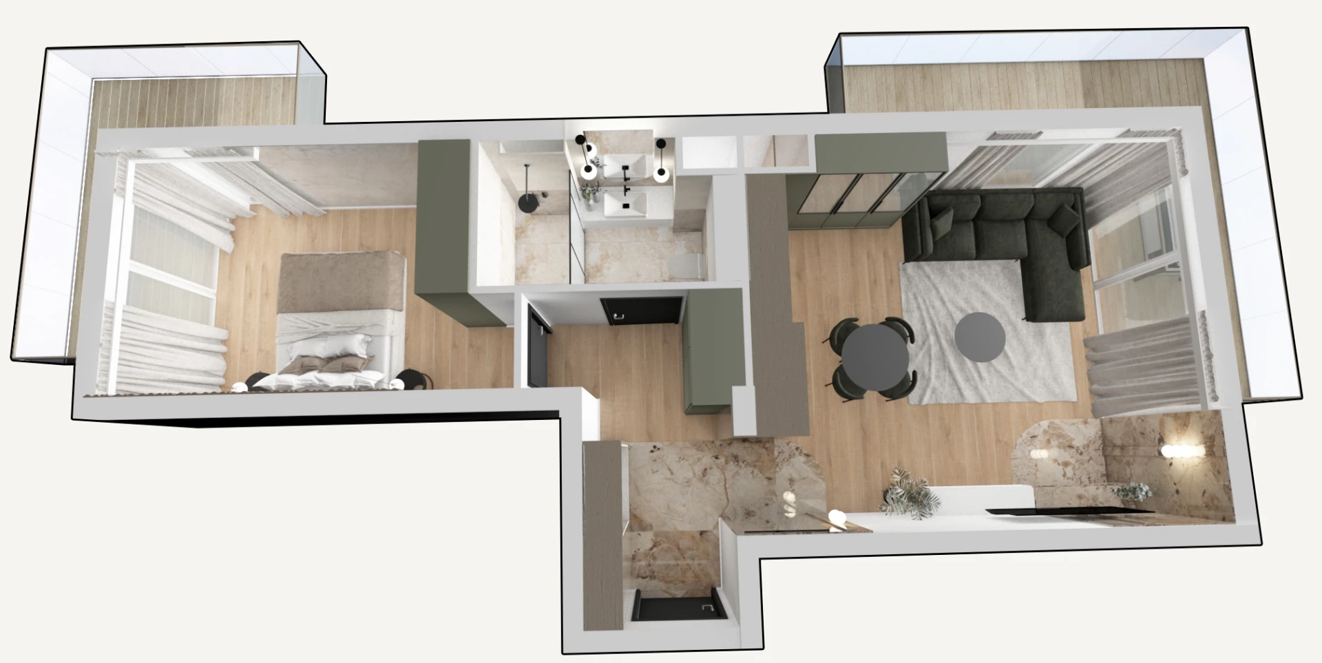 W przedmiotowym lokalu o powierzchni 45,83m2 znajdują się: