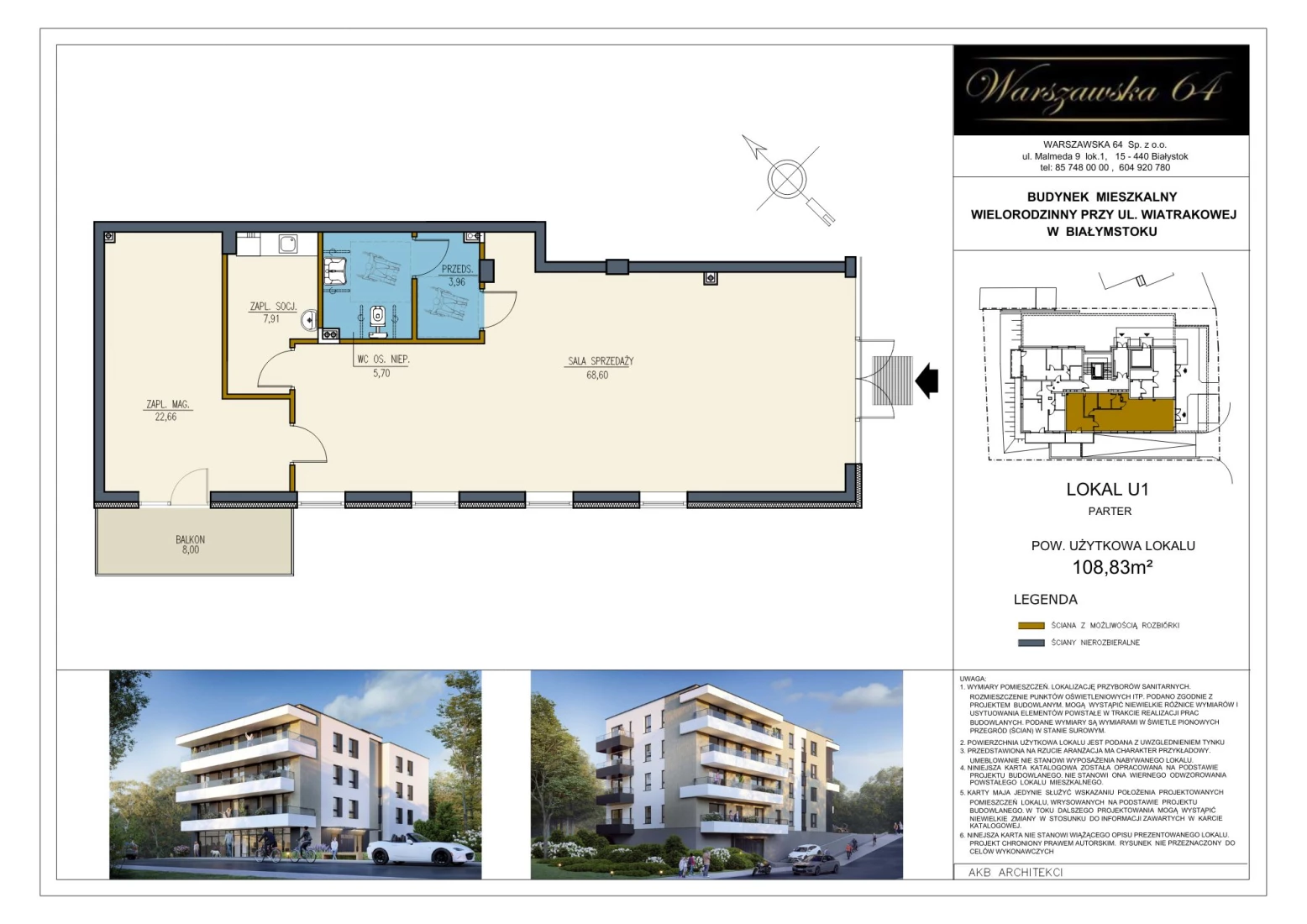 W przedmiotowym lokalu U1 na powierzchni 108,83m2 znajdują się: