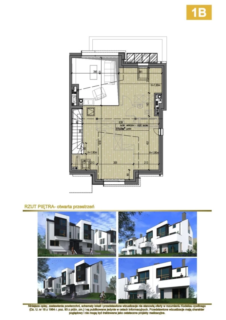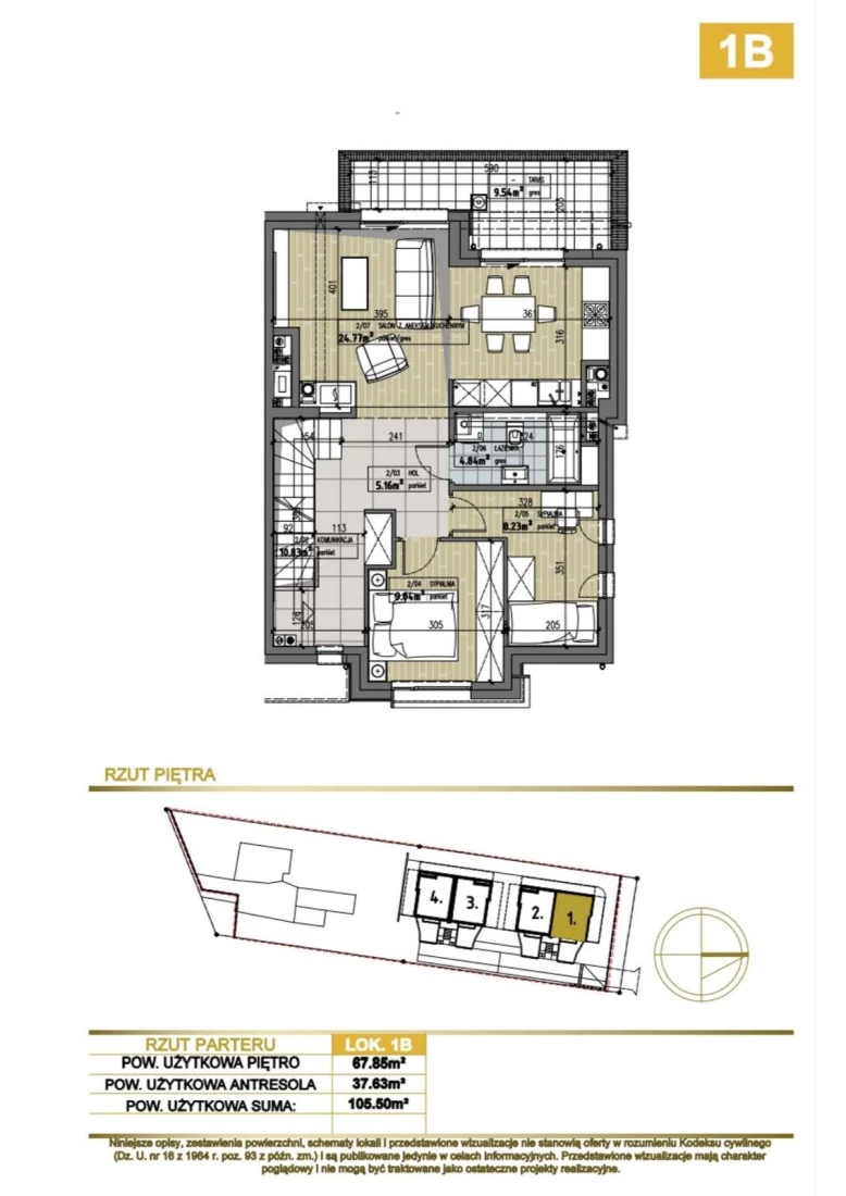 Apartament 1B położony jest na I PIĘTRZE