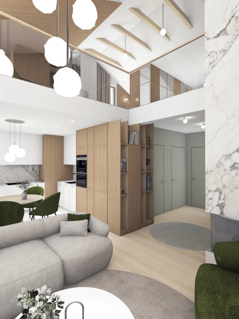 Na powierzchni 105,50m2 tego dwupoziomowego mieszkania znajdują się: