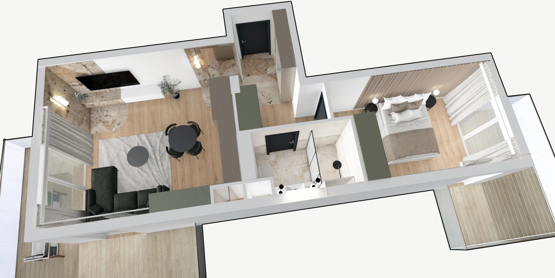• Pokój z aneksem: 22,29m2