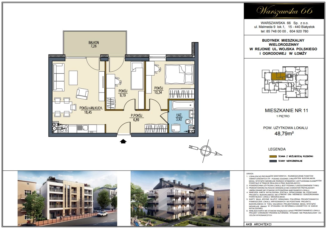 Mieszkanie M11 położone jest na I PIĘTRZE budynku.