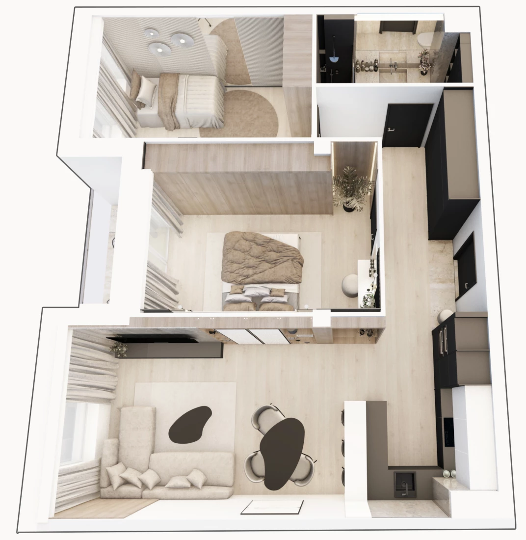 • Pokój z aneksem: 026,90m2
