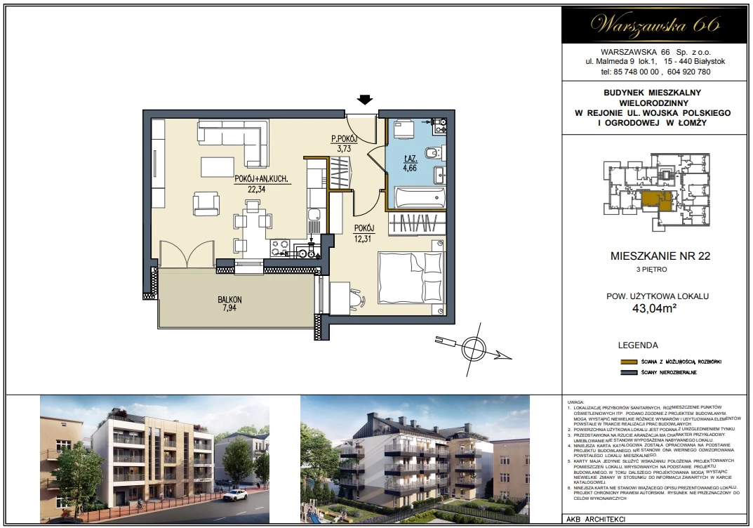 Mieszkanie M22 położone jest na III PIĘTRZE budynku.