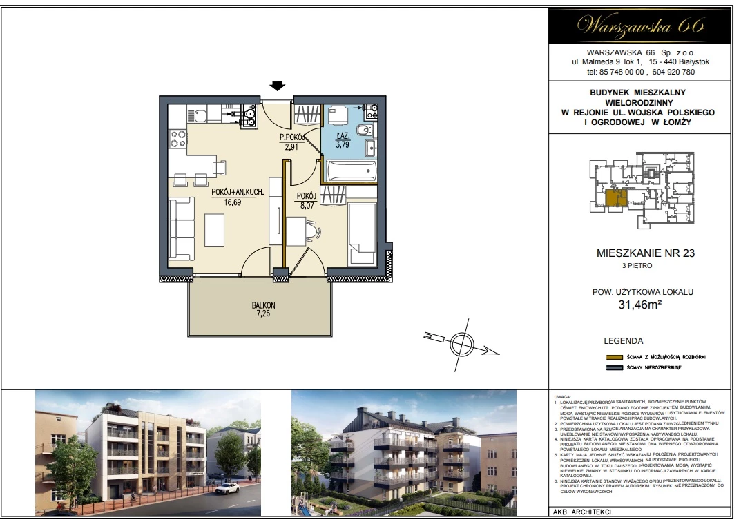 Mieszkanie M23 położone jest na III PIĘTRZE budynku.