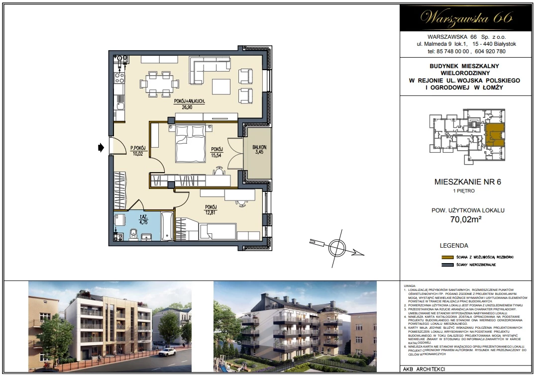 Mieszkanie M6 położone jest na I PIĘTRZE budynku.
